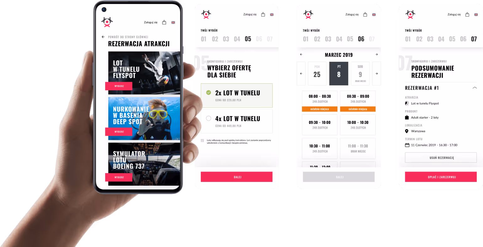 Musieliśmy całkowicie przeprojektować sposób rezerwacji lotów dla klientów. Stworzyć prosty i logiczny system, który będzie odpowiedni zarówno dla nowych, jak i profesjonalnych skoczków odwiedzających serwis codziennie.