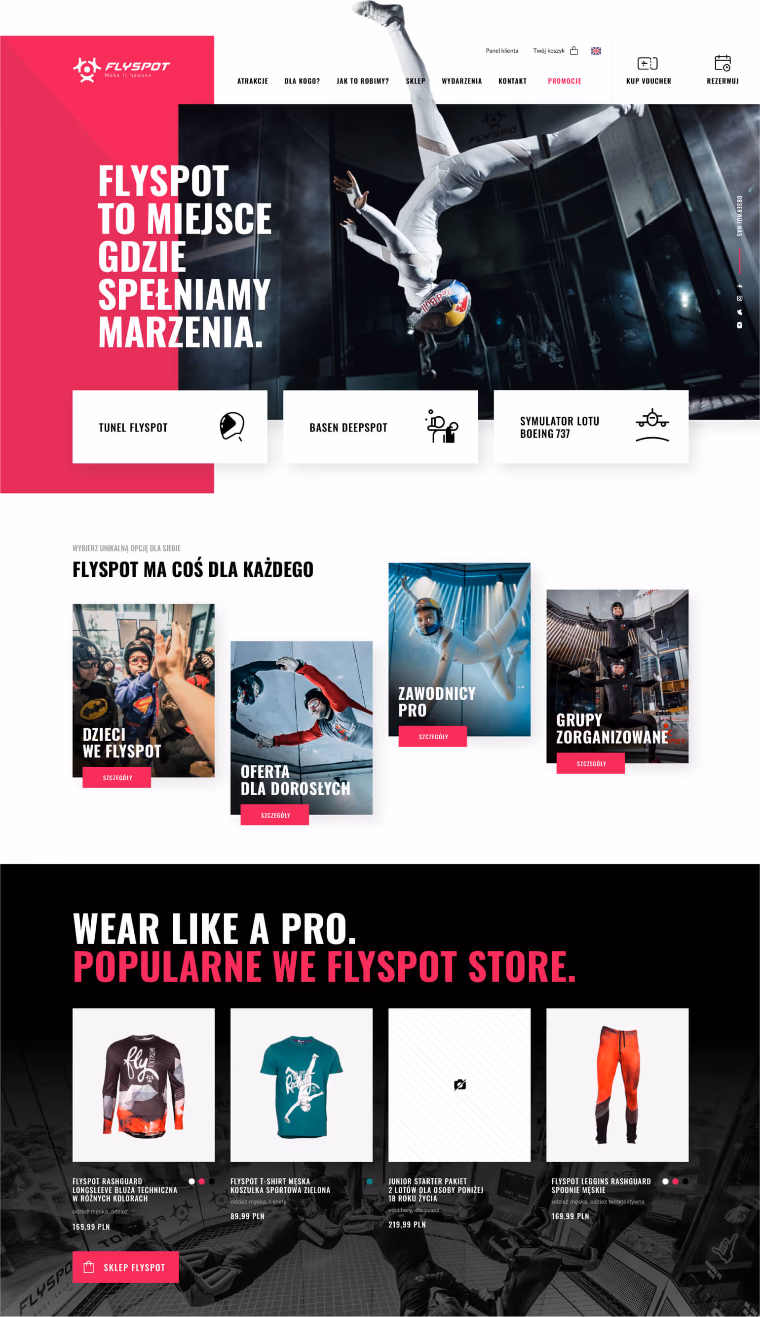 Nowy FlySpot.com stał sie centrum komunikacji marki. Kanalizuje większość ruchu i rezerwacji w tunelach w całej polsce. Dzięki temu zespół FlySpot może skupić się na tym co potrafi najlepiej - lataniu :).