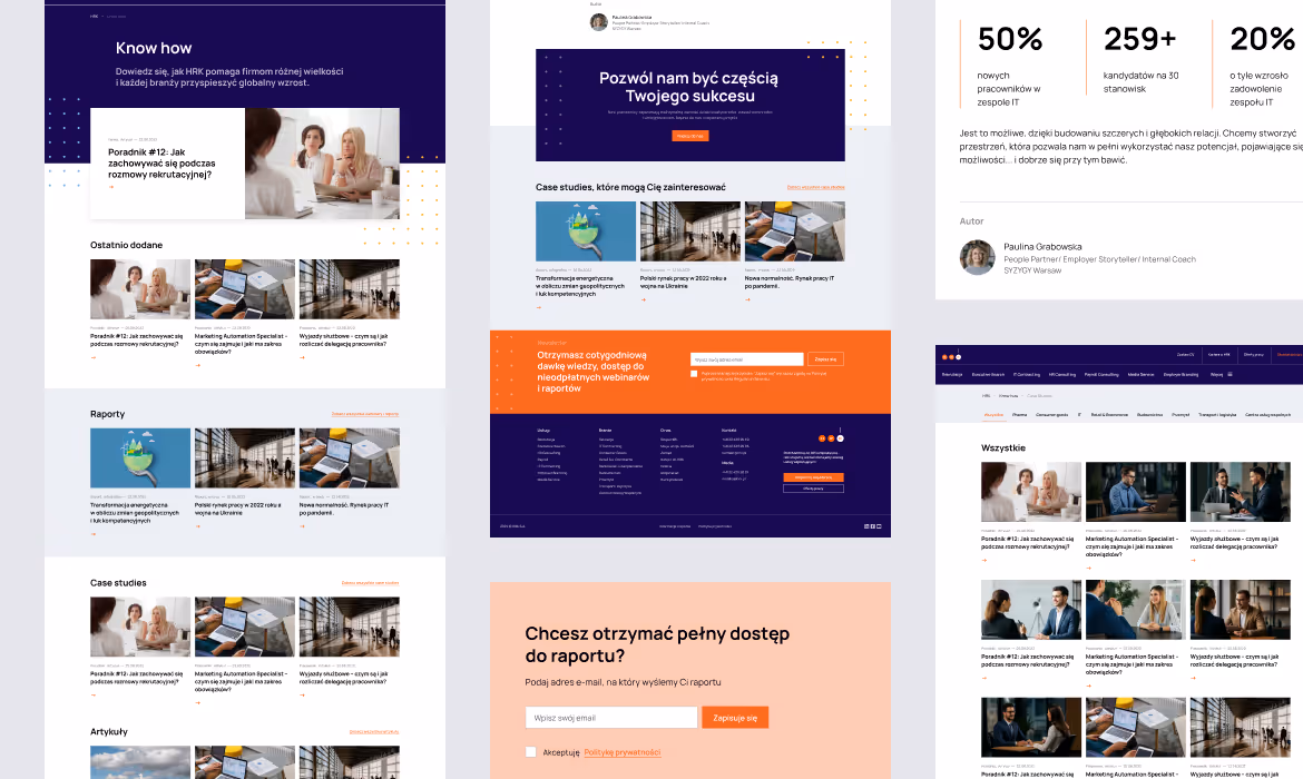 Ważnym elementem jest również rozbudowana sekcja contentowa. To osobna część witryny o nazwie “Know-how”, gdzie HRK publikuje artykuły, raporty i materiały eksperckie. Sekcja ta wzmacnia widoczność firmy w wyszukiwarkach, wspiera działania SEO oraz pozwala dzielić się wiedzą z odbiorcami.