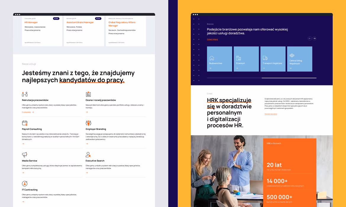 Stworzenie serwisu internetowego, który wspiera sprzedaż, rekrutację i komunikację HRK, odpowiadając na potrzeby zarówno klientów biznesowych, jak i kandydatów.