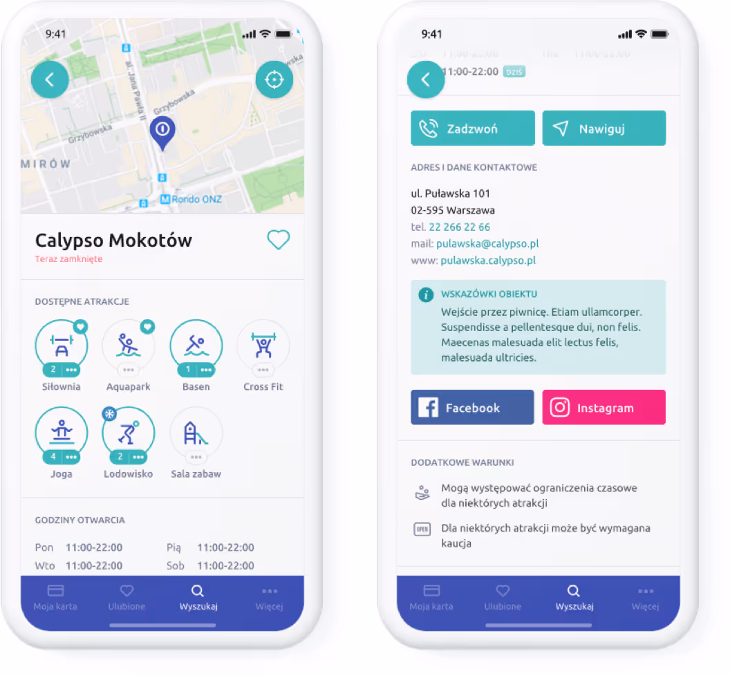 Szczegóły obiektu zawierają dokładny adres, dane kontaktowe, listę dostępnych atrakcji, opis czy wskazówki dla gości.