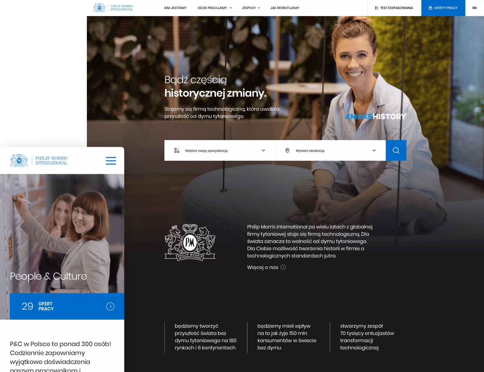Zaprojektowaliśmy nową stronę internetową skierowaną do kandydatów i pracowników lokalnego oddziału Philip Morris International.