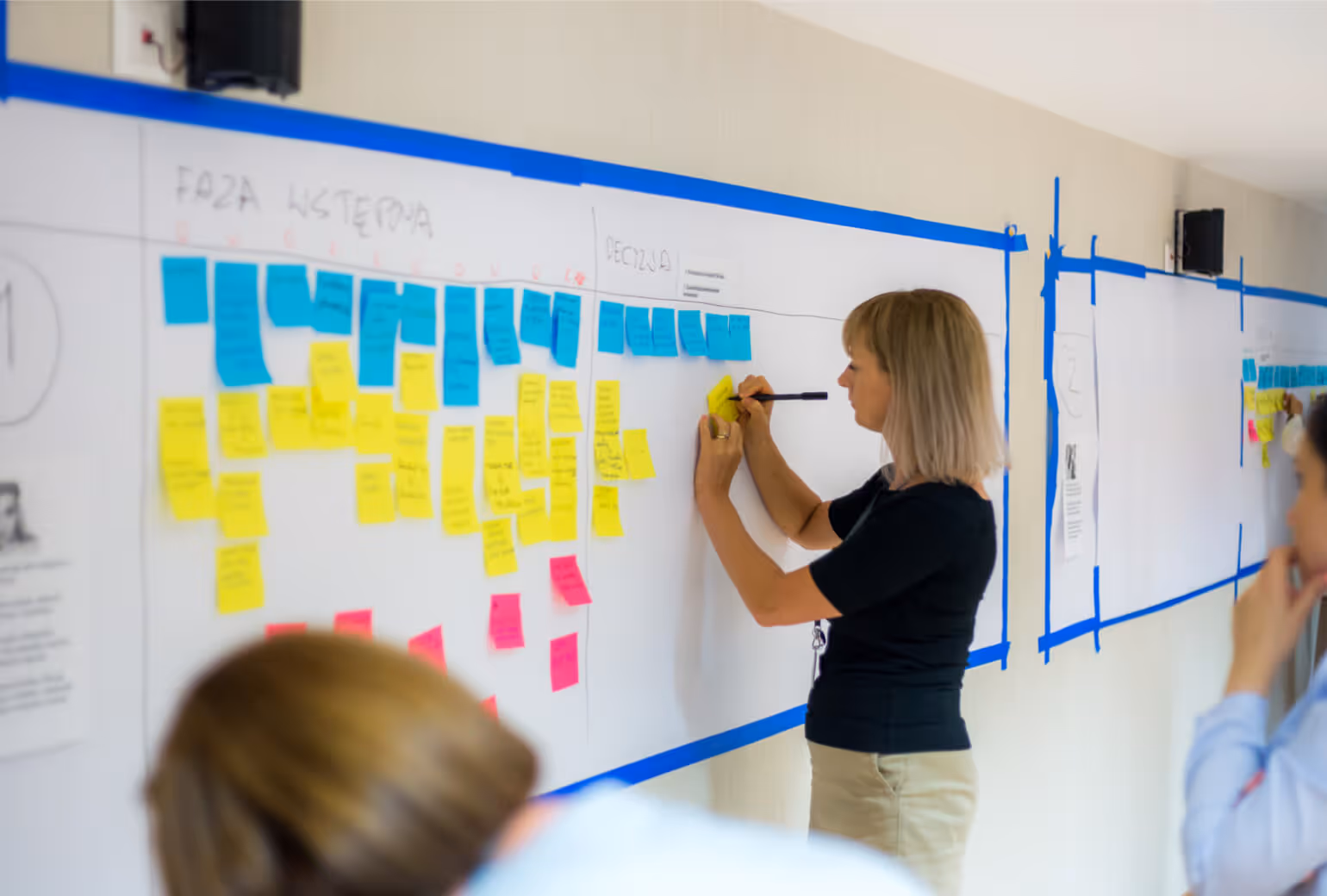 Drugiego dnia warsztatów przeszliśmy do podsumowania wniosków i wspólnej pracy nad wstępną architekturą serwisu internetwego. Razem z klientem udało nam się stworzyć wireframe, który stanowił później podstawę do dalszej pracy zespołu UX.